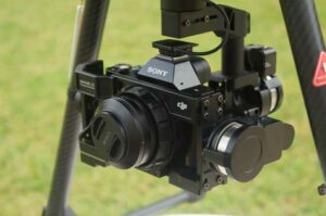 Klau Geomatics has custom 2-axis stabilised gimbals for the RX1r2, a6400 and a5100 cameras, with adjustable and programmable camera pitch to move from nadir mapping to oblique inspection modes.